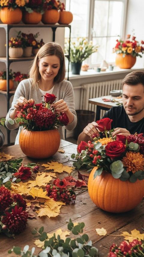 • Осенний мастер-класс с тыквами: Сезонный мастер-класс по созданию ярких композиций с использованием тыкв и осеннего декора.
