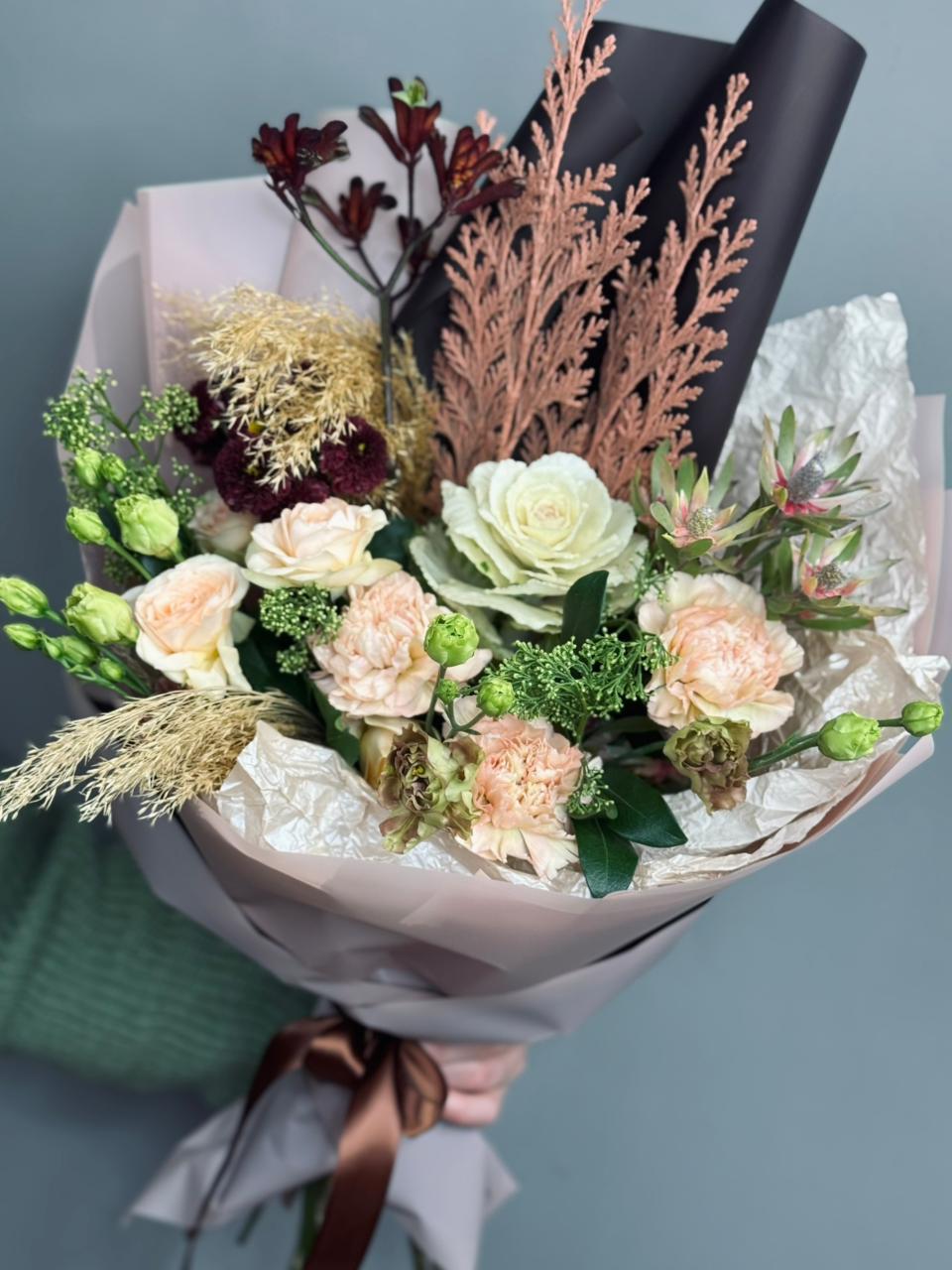 Где купить букет с брассикой, скиммией и эустомой в Москве?
