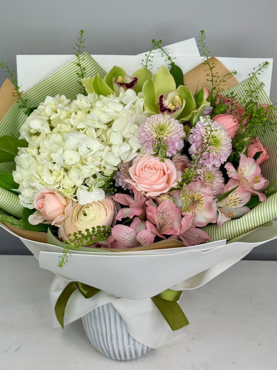 Букет Как в сказке с гортензией орхидеями и ранункулюсом  (2)