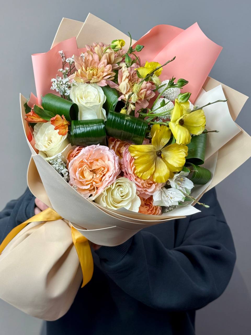 Мы используем только свежие цветы, чтобы букет радовал как можно дольше. Профессиональная сборка и аккуратная упаковка подчеркивают премиальный характер композиции.