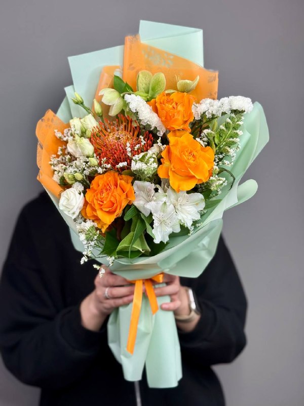 Подарите своим близким частичку солнечного тепла и нежной любви с уникальным букетом "Апельсинка"! Этот яркий и жизнерадостный ансамбль станет идеальным подарком для любого случая, будь то день рождения, юбилей, профессиональный праздник или просто желание порадовать любимого человека. Сочетание сочных апельсиновых оттенков роз и утонченной элегантности нутана создает неповторимую композицию, которая принесет улыбку и отличное настроение.