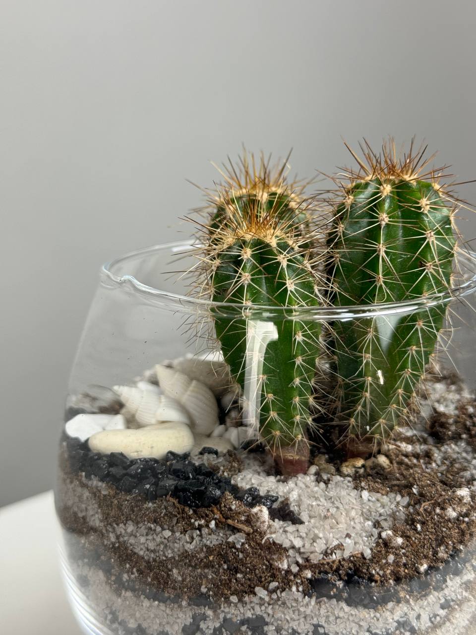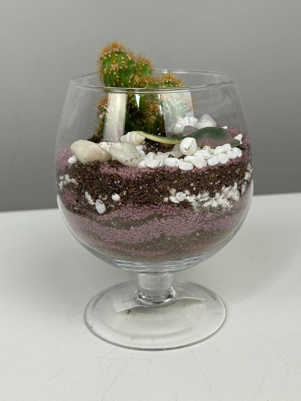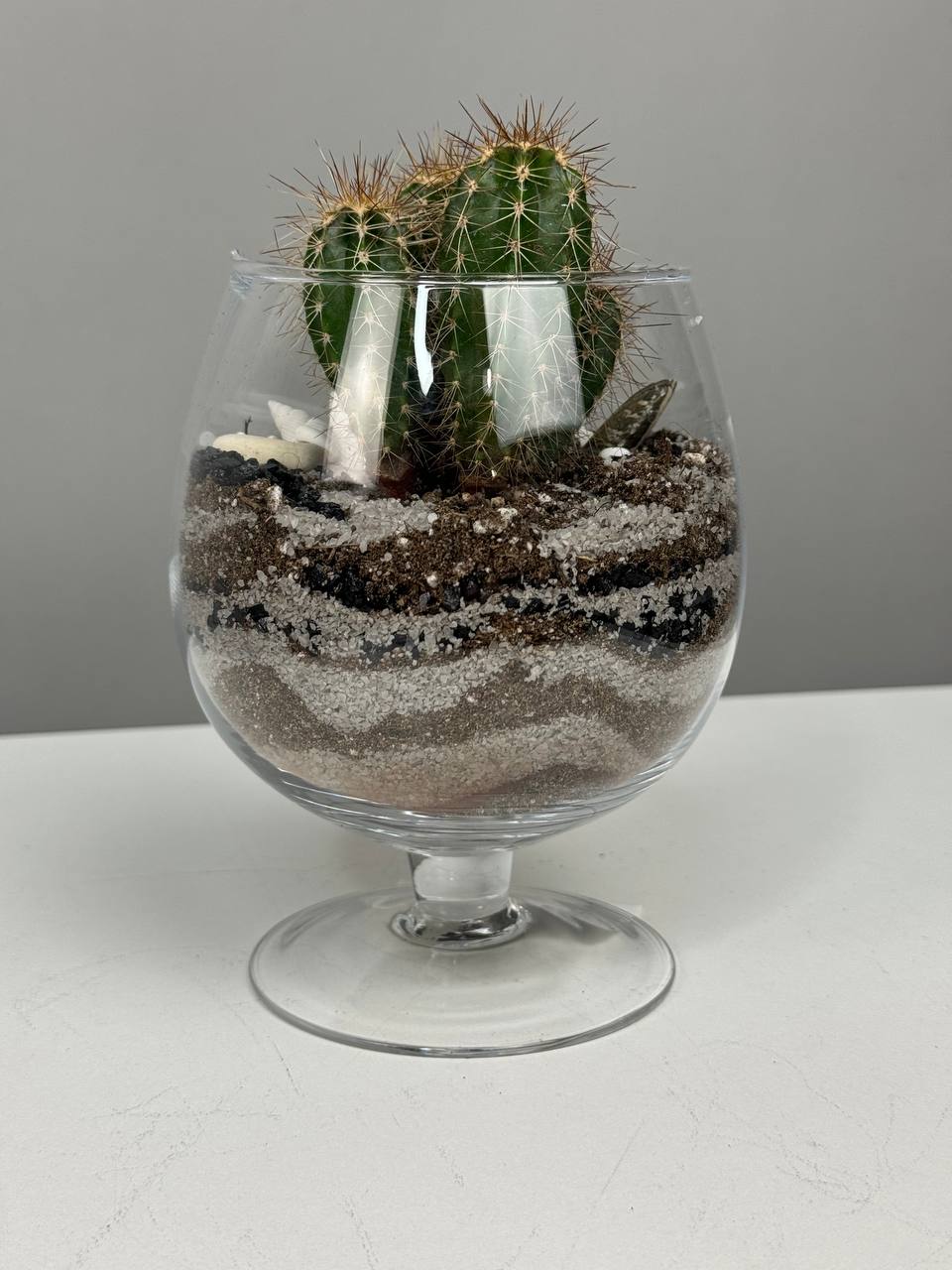 Этот флорариум станет прекрасным подарком для любого случая – от дня рождения до свадьбы, он порадует и восхитит своей красотой и оригинальностью. Создайте уютный уголок природы в своем доме с помощью этого прекрасного флорариума с кактусами в стеклянном сосуде, который станет идеальным дополнением к любому интерьеру.