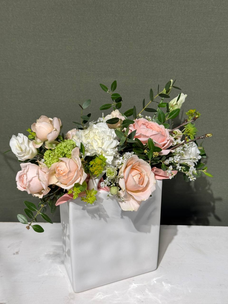 Не упустите возможность сделать незабываемый сюрприз и привнести в жизнь ваших близких немного радости и красоты. Закажите композицию в сумочке с гвоздикой и кустовой розой и подарите ему или ей частичку весеннего настроения!