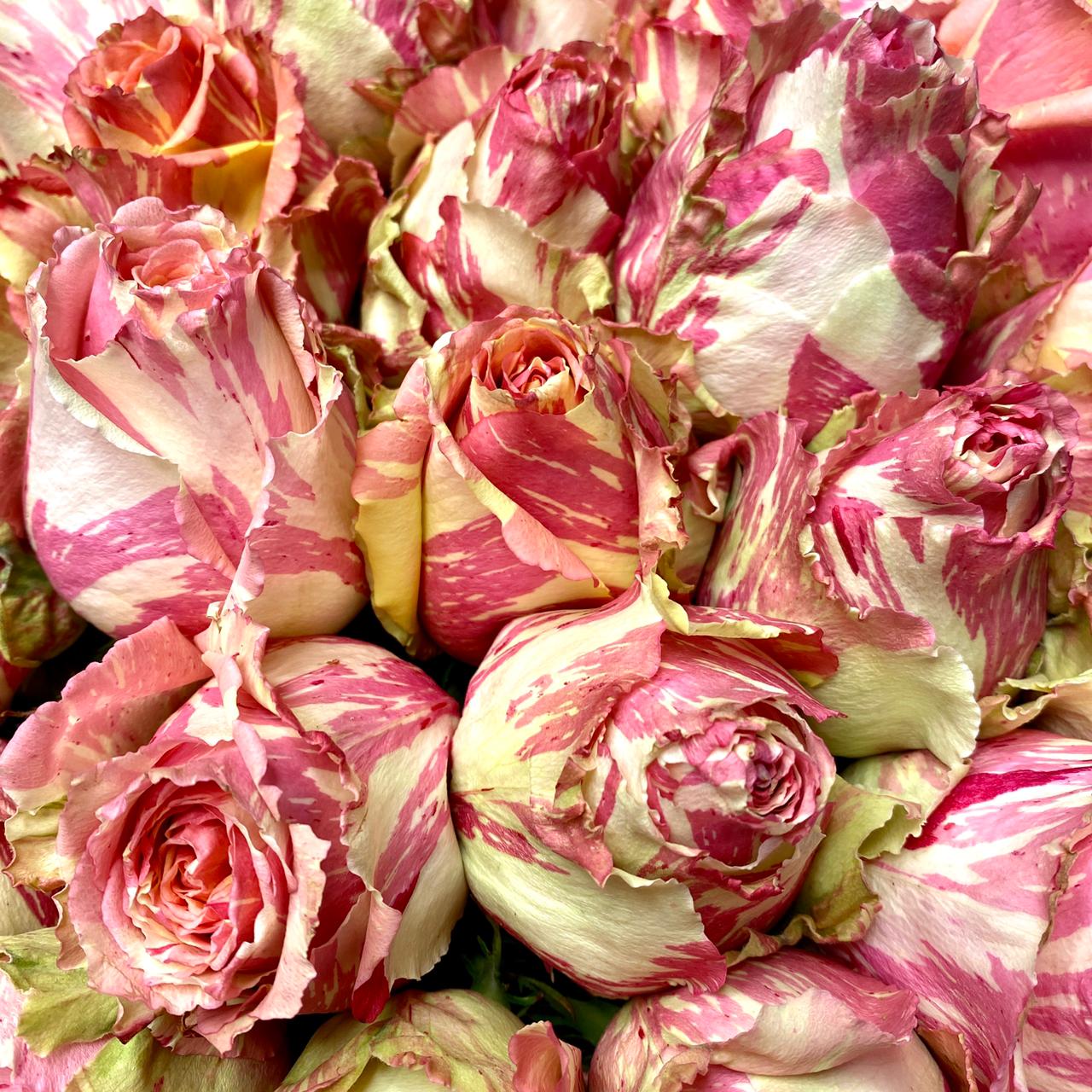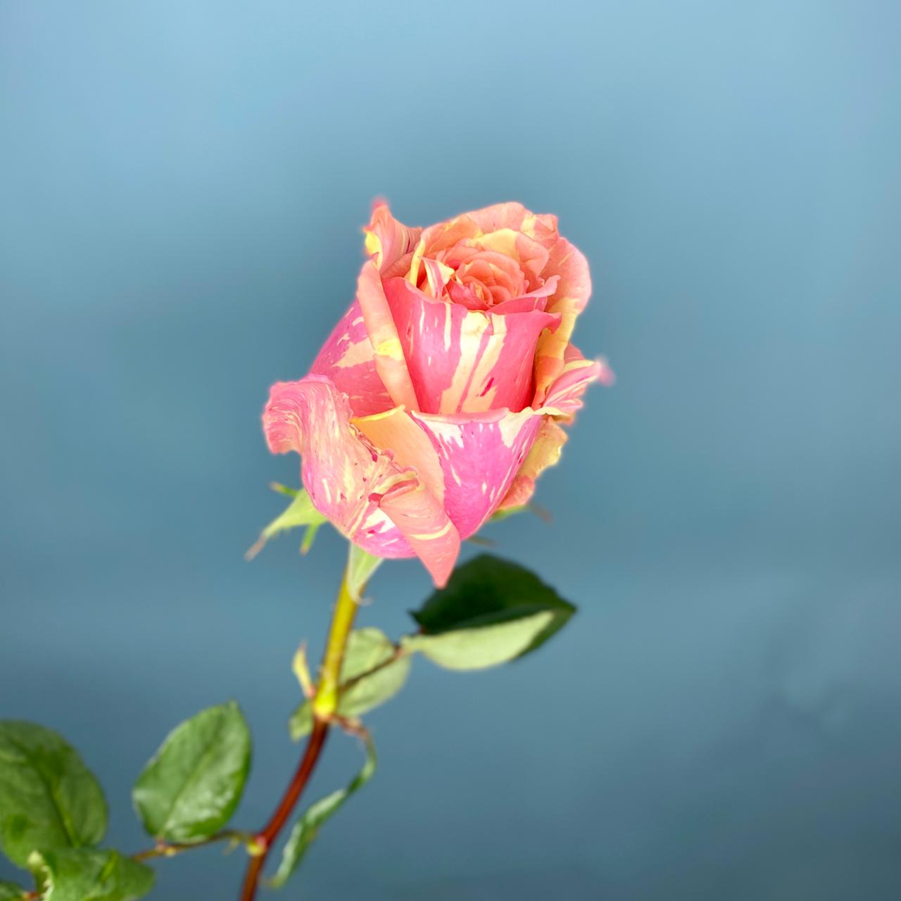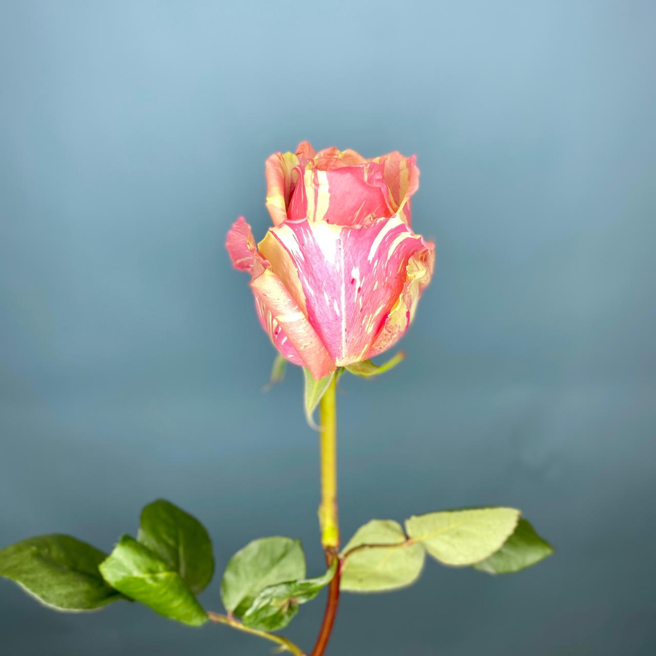 Роза Fiesta - это сорт необычной градиентной расцветки, переходящей от молочно-желтого к нежно-розовому, с лимонными и кремовыми полосками. Кроме необычного цвета роза интересна еще и весьма своеобразной ромбовидной формой распустившегося цветка. .