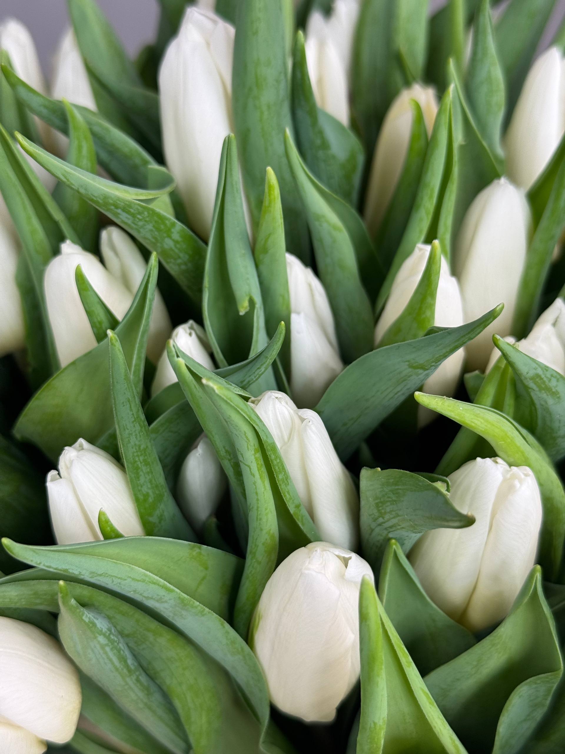 Белый букет мечты. Купите свежие тюльпаны Вайт Принц в розницу и подарите весеннее настроение!