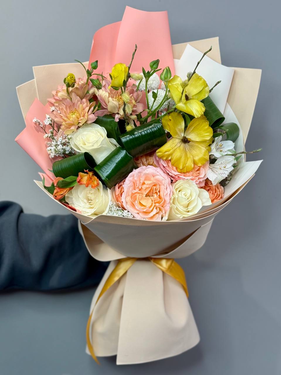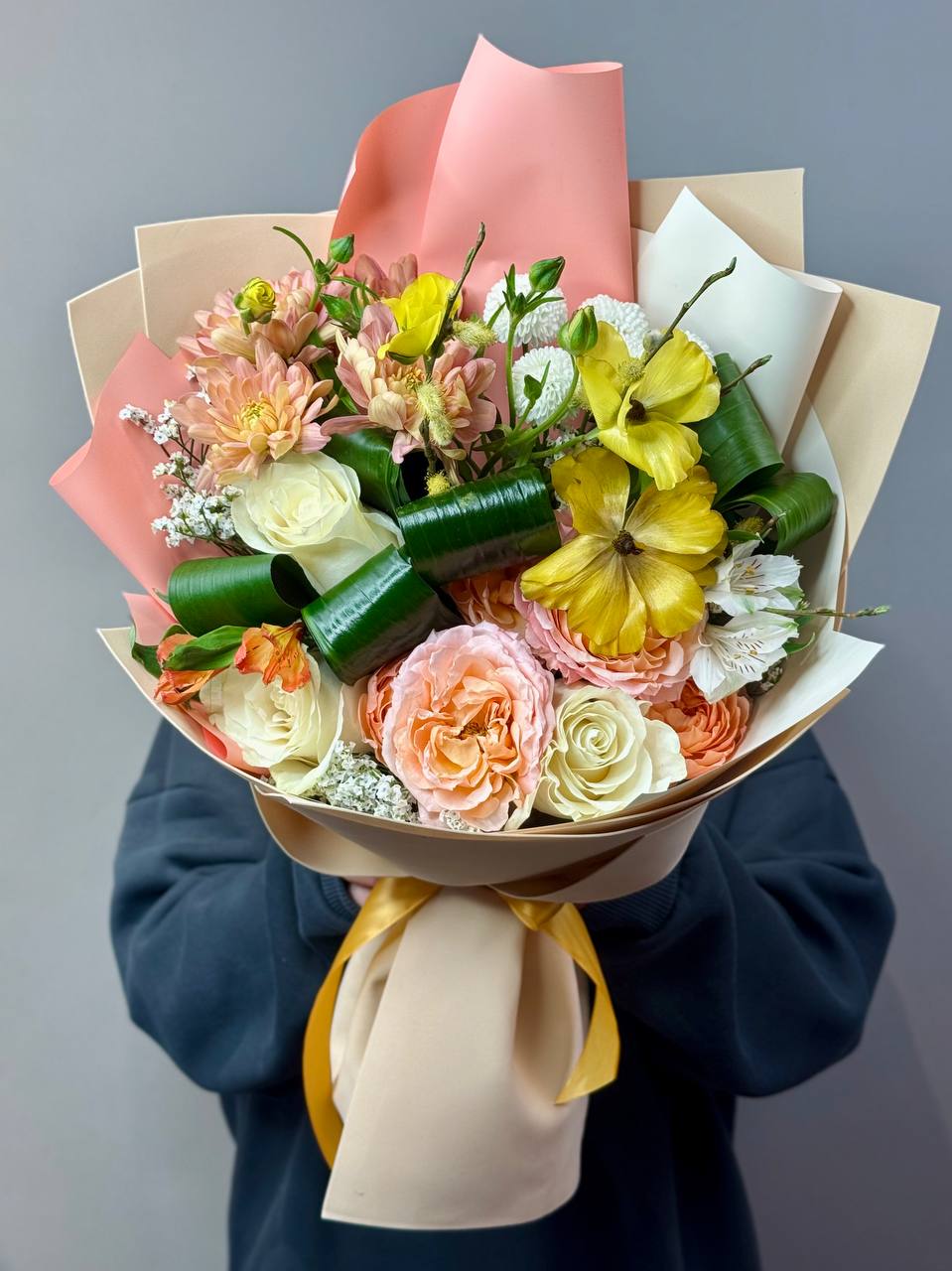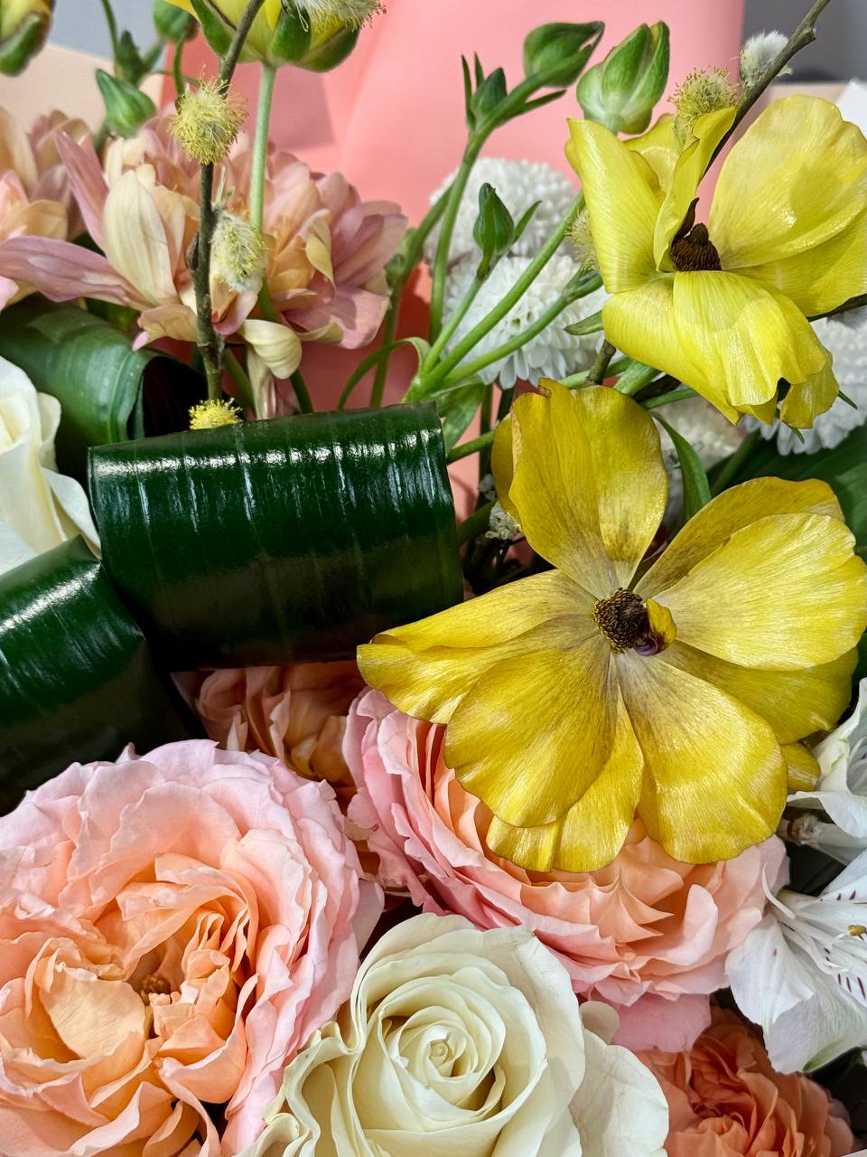 Мы используем только свежие цветы, чтобы букет радовал как можно дольше. Профессиональная сборка и аккуратная упаковка подчеркивают премиальный характер композиции.