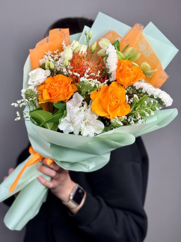 Подарите своим близким частичку солнечного тепла и нежной любви с уникальным букетом "Апельсинка"! Этот яркий и жизнерадостный ансамбль станет идеальным подарком для любого случая, будь то день рождения, юбилей, профессиональный праздник или просто желание порадовать любимого человека. Сочетание сочных апельсиновых оттенков роз и утонченной элегантности нутана создает неповторимую композицию, которая принесет улыбку и отличное настроение.
