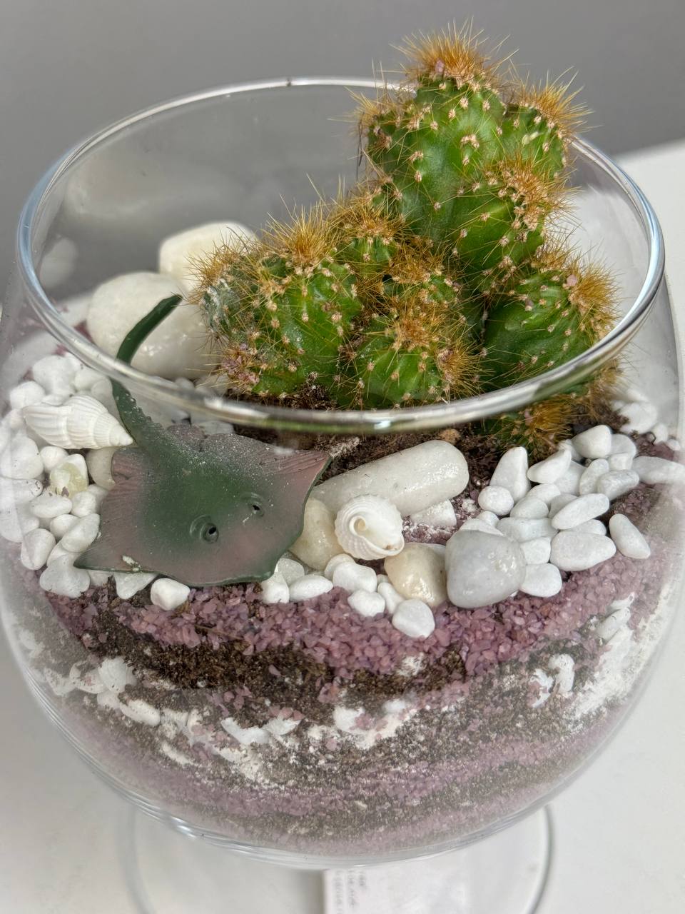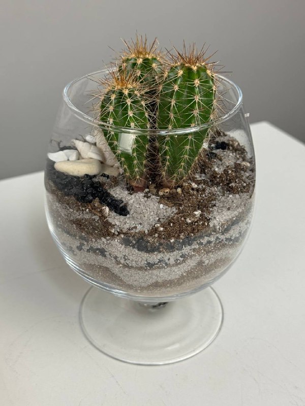 Этот флорариум станет прекрасным подарком для любого случая – от дня рождения до свадьбы, он порадует и восхитит своей красотой и оригинальностью. Создайте уютный уголок природы в своем доме с помощью этого прекрасного флорариума с кактусами в стеклянном сосуде, который станет идеальным дополнением к любому интерьеру.
