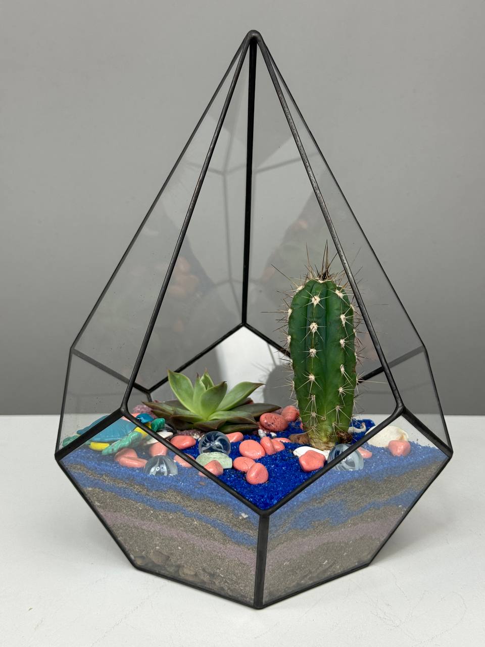 Этот флорариум станет прекрасным подарком для любого случая – от дня рождения до свадьбы, он порадует и восхитит своей красотой и оригинальностью. Создайте уютный уголок природы в своем доме с помощью этого прекрасного флорариума с кактусами в стеклянном сосуде, который станет идеальным дополнением к любому интерьеру.