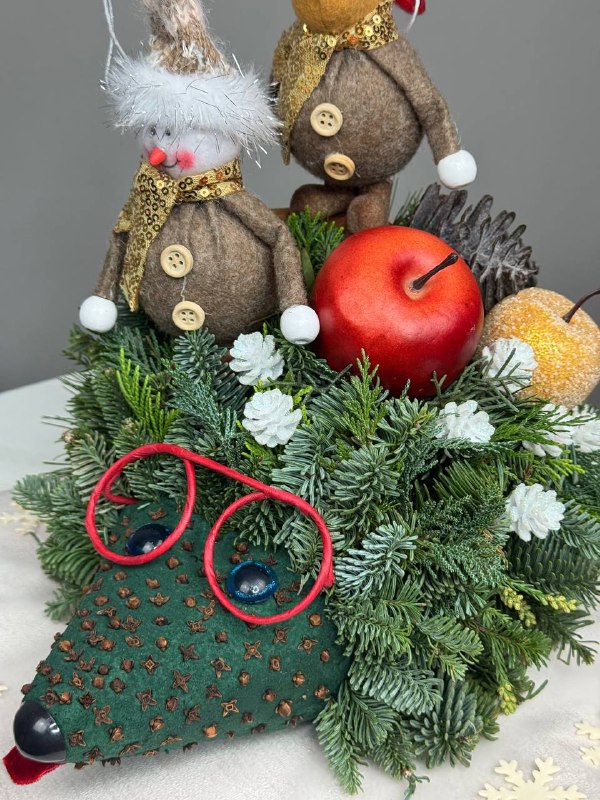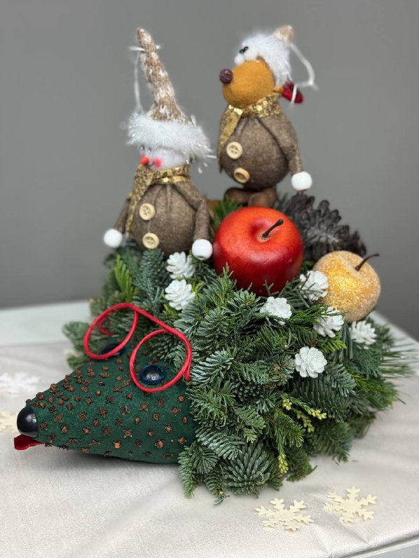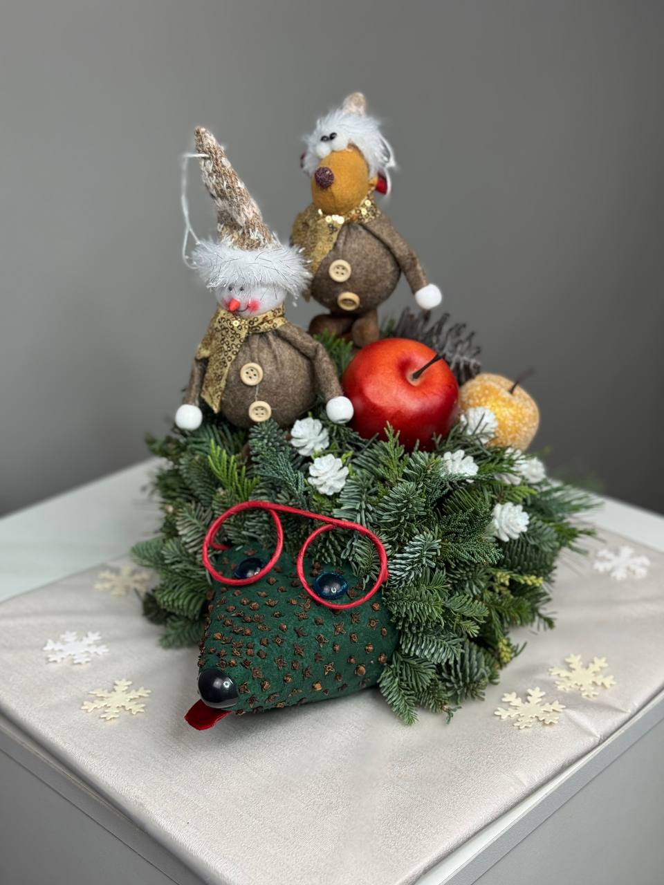 Композиция «Новогодняя вечеринка у Ёжика» — это дерзкий, яркий и нестандартный взгляд на праздник. Вдохновленный образом стильного и современного ёжика, этот букет сочетает неожиданные фактуры, кислотные акценты и дух беззаботного веселья. Здесь нет места скуке — только энергия, юмор и праздничный драйв.