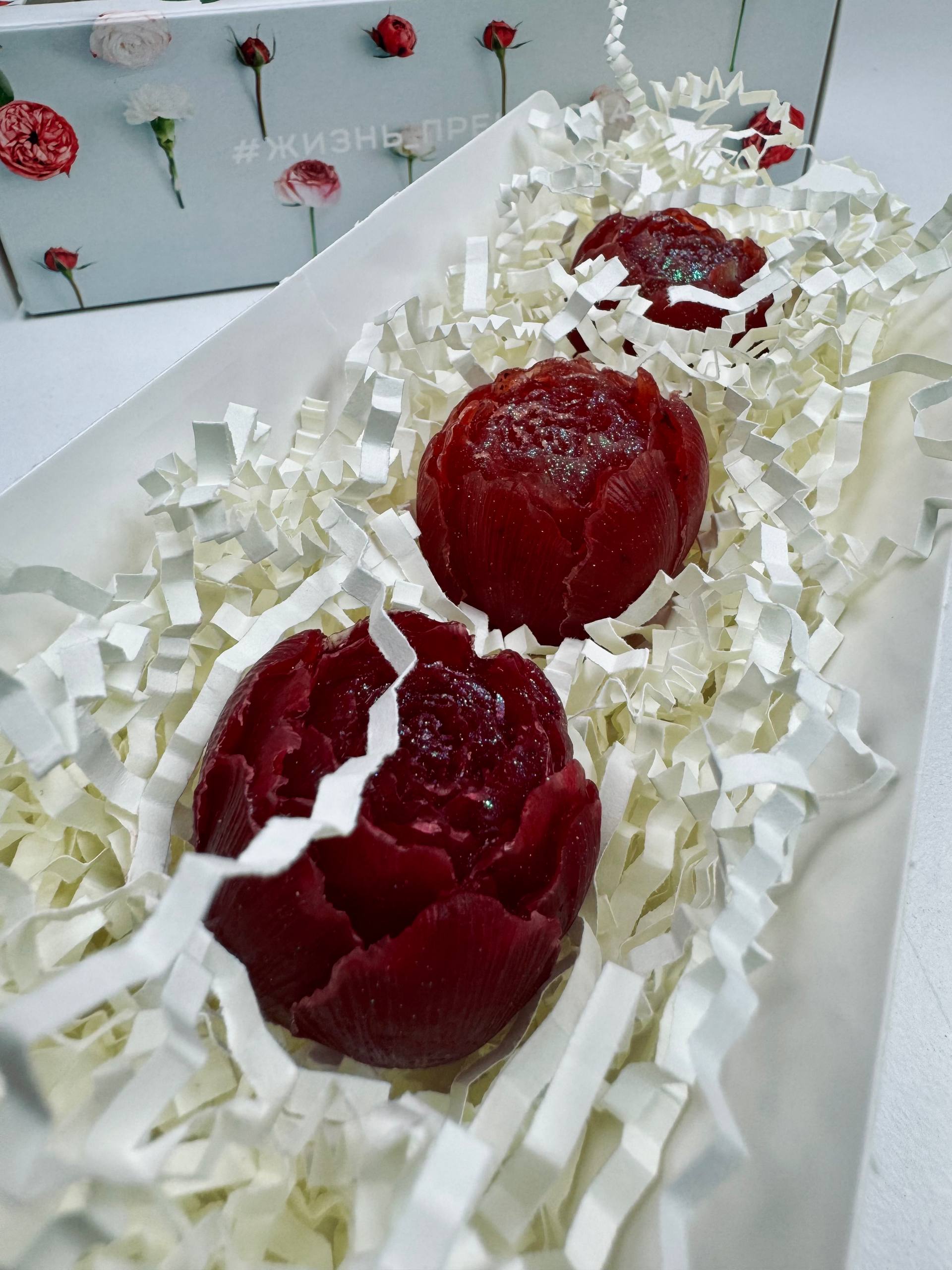 Подарочный набор фигурного мыла «Мыльная история: Пионы» от LUCHaroma - три реалистичных цветка ручной работы с ароматом красных ягод и инжира. Натуральный состав, эстетичный дизайн и роскошный фруктово-ягодный парфюм. Идеальный подарок для женщин.