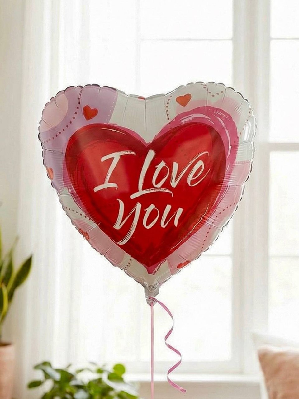 А для тех, кто предпочитает классическую нежность, у нас есть не менее прекрасный вариант — гелевый шар-сердце в розово-красных тонах с такой же трогательной надписью «I love you». Пусть ваши чувства парят!