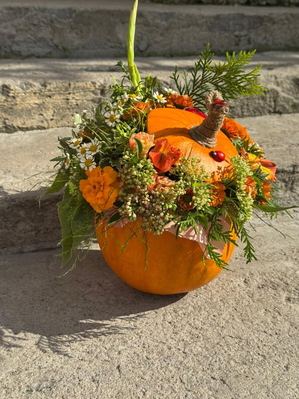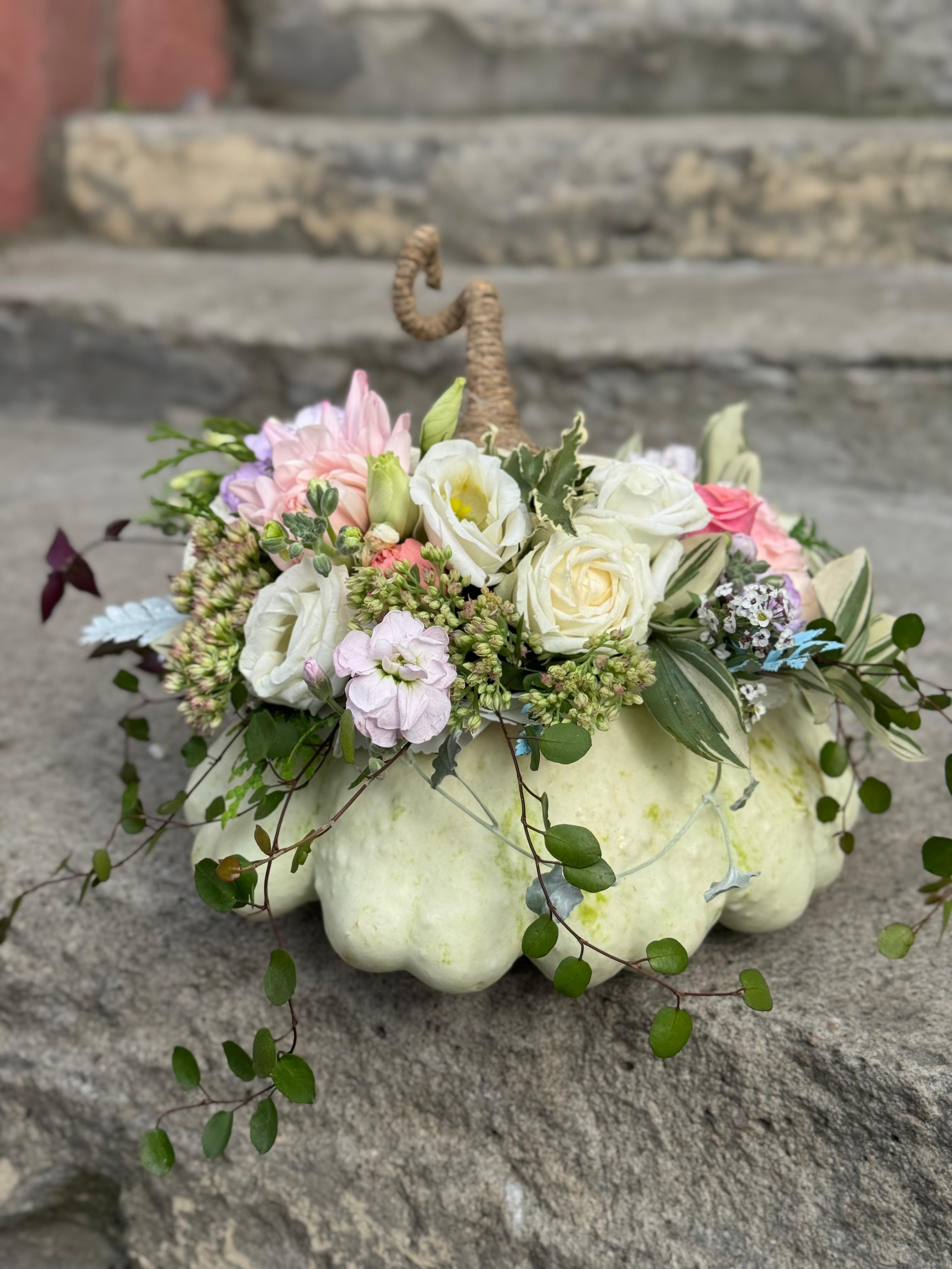 Создаем оригинальную осеннюю цветочную композицию прямо внутри настоящей тыквы!